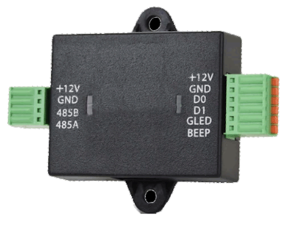 - Permite convertir la señal de 1 lector Wiegand al estándar RS485