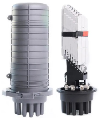 • Caja de empalme de fibra óptica termocontraíble tipo DOMO, 1 bandeja de empalme  de 16 hilos FO, 9 PU